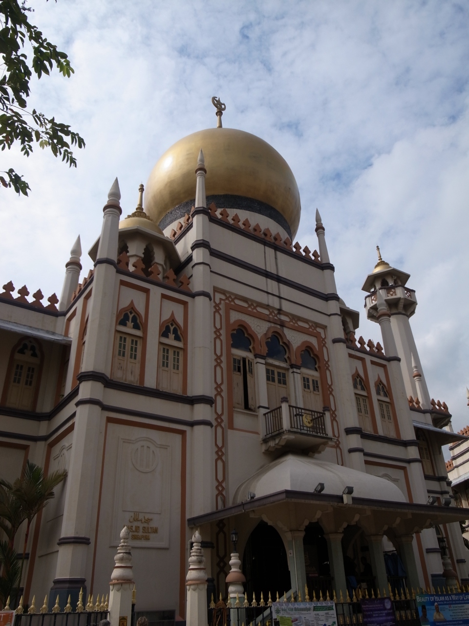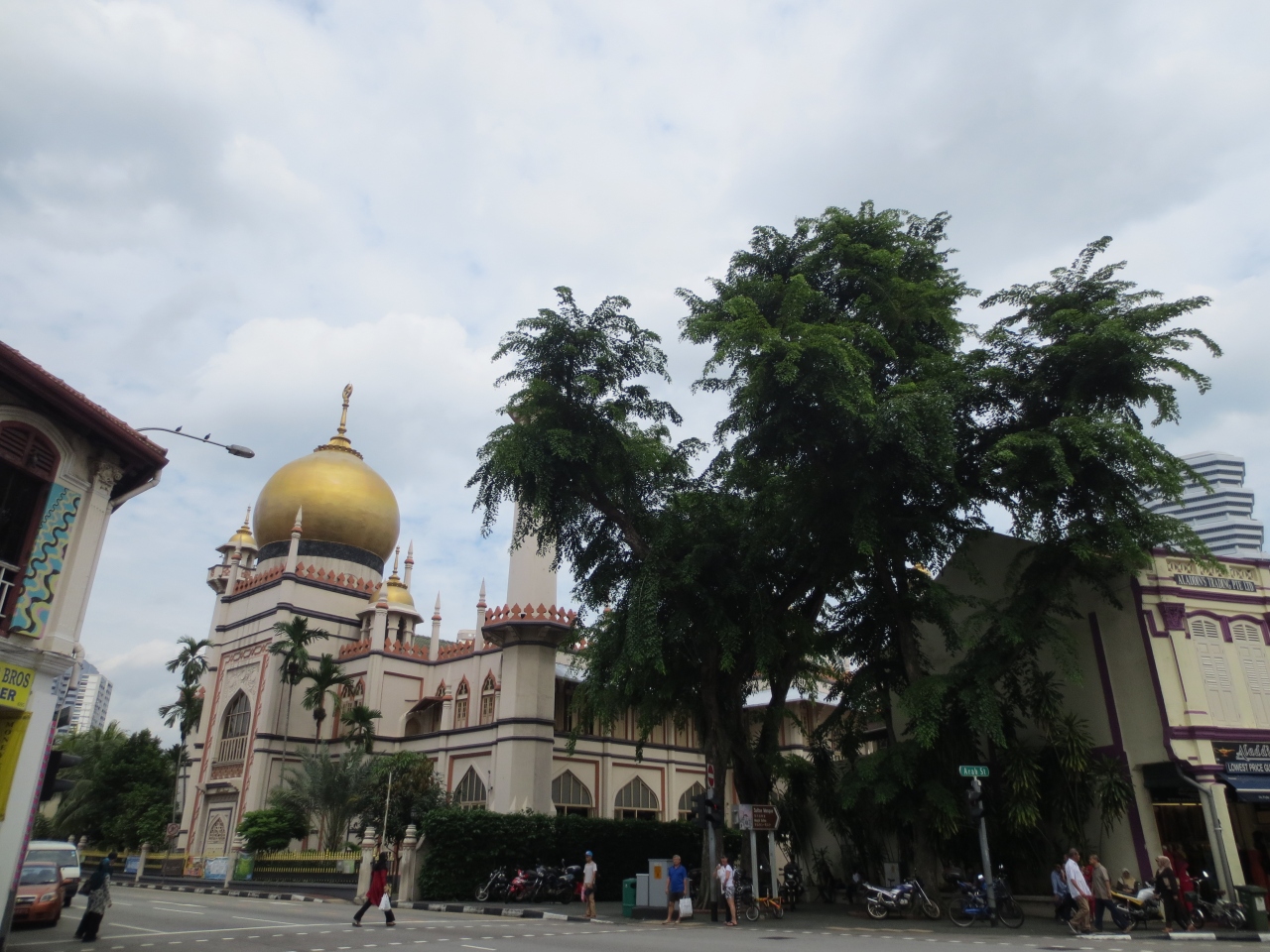 アラブ・ストリートにあるイスラム教のモスク。外観は金色の屋根が特徴的で、内装も煌びやかで美しい。