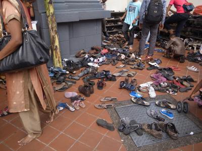 寺院内へは土足厳禁で靴を脱がないといけません。入り口はそのため靴が散乱しています。靴をいれる袋を準備した方がいいです。