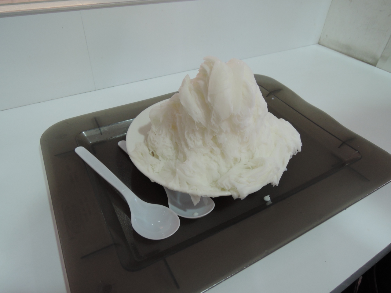 日本のカキ氷と違って、普通の氷ではなく杏仁ミルクをそのまま凍らせたものを使っています。作り方が違うので、ふわっとした食感で濃厚なカキ氷になっています。これが本当においしいんですよ。