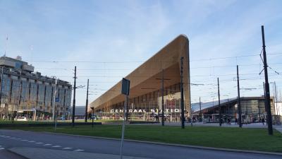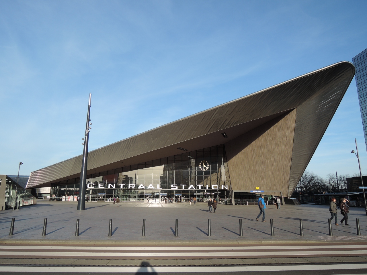 ロッテルダムの玄関口であるセントラルステーションの駅舎は大きな三角形の形状の建物です。遠くからでも目立つこの建物はとても迫力があり、ロッテルダムのシンボリックなものになっていますね。