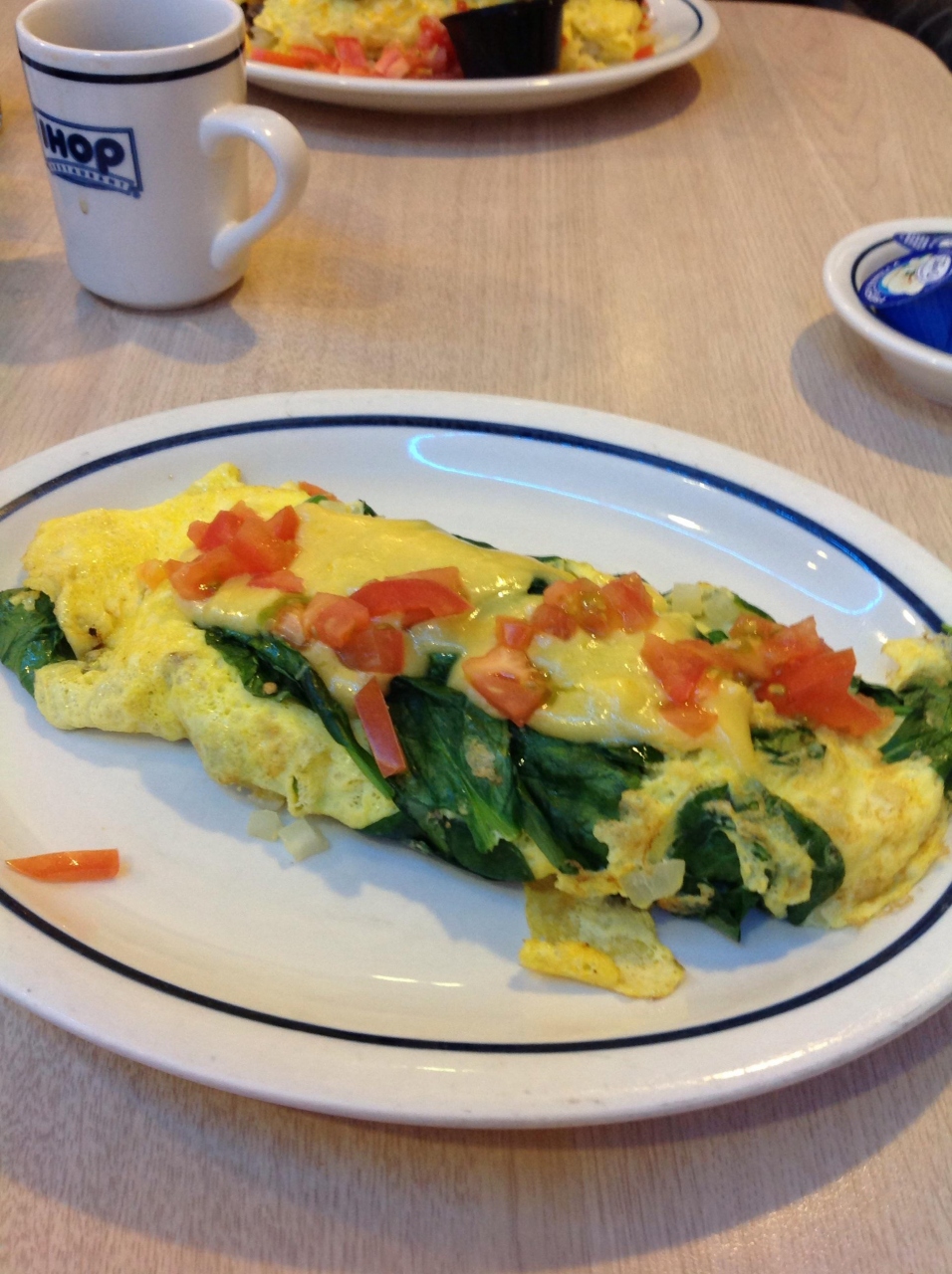 オムレツを頼むとパンケーキが3枚ついてきます。