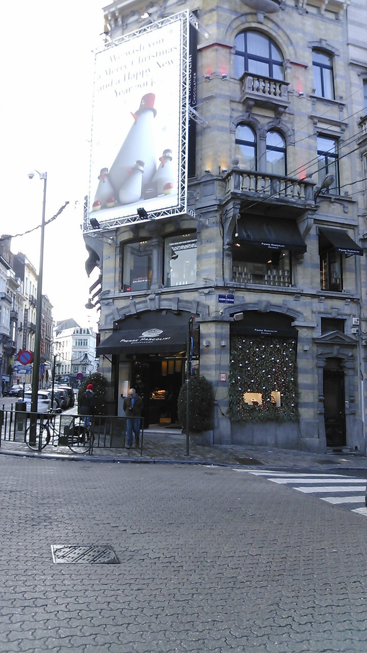 広場の角の店構えは、グランプラスやアーケードの中の他のショコラティエと比べて見栄えします。
