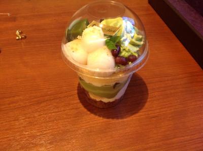 抹茶のパフェと、堂島ロールのカットと、モンブラン。