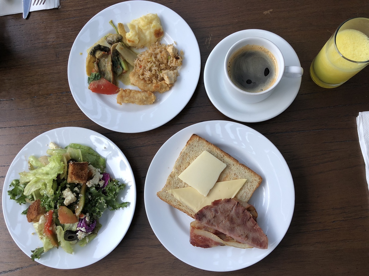 卵はお好きな調理方法でオーダーで作ってくれます。オムレツとオーバーイージーで頂きました。朝からサラダ(日替わり)やフルーツ、フルーツジュース(日替わり)、デリは数種類ポテトも日替わりでした。