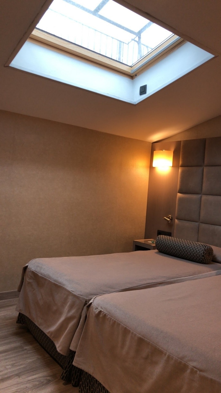 5階で天窓付のそれはそれで珍しく趣のあるお部屋だったのですが、