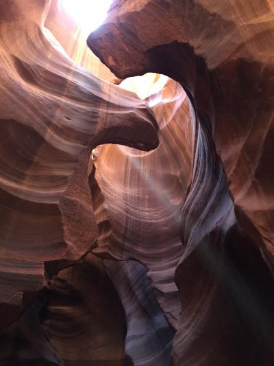 今回はアッパーアンテロープキャニオンを見学しました。太陽の光が真上から刺すタイミングということで、割り高な10:15のツアーに参加しました。ツアー客の多さに少し辟易としましたが、良いタイミングということで仕方ないかもしれません。