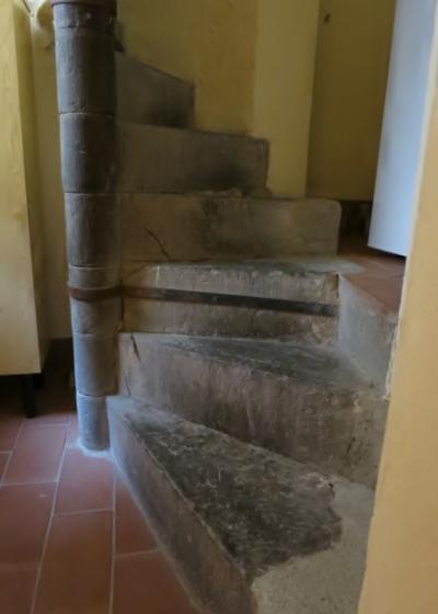 宿泊した部屋には螺旋階段があり屋上に出ることができました。ここからの眺望はすばらしいものでした。螺旋階段も石造りで素敵です。部屋の広さも十分でした。ただこの部屋は従業員の寝室と壁一枚なので夜は彼女たちのおしゃべりの声が聞こえてきました。さほど大きな声ではないので問題はないと思います。宿泊する際には塔のある部屋を希望されるとよいと思います。