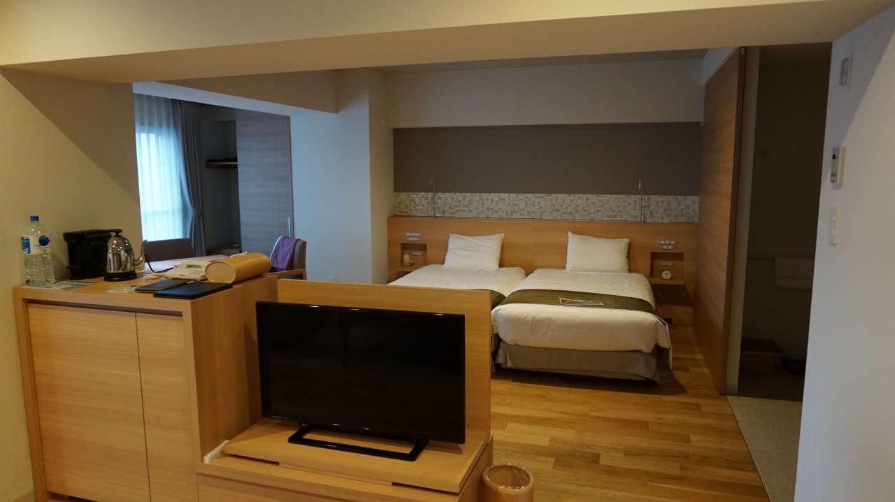 ツインの部屋でシャワーブースのみでお風呂はありませんでしたが、ホテルの大浴場がありますし、隣接の啄木亭のお風呂も利用できますので、問題ありません。部屋は、木の床が気持ちいいです。