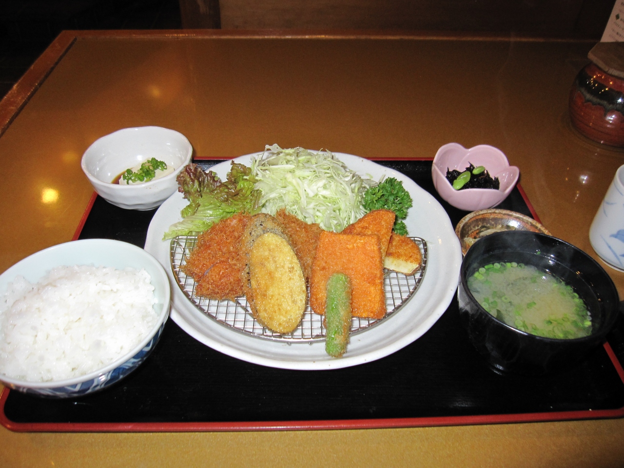 ホテルニューオータニ博多の地下1Fの江戸前とんかつのお店で平日限定のレディースランチ980円(1日10食限り)をいただきました。揚げ物では、コロッケが特においしかったです。ひじきの煮物、味噌汁、デザートのシャーベット、ほうじ茶、どれも満足の味でした。ごちそうさま。