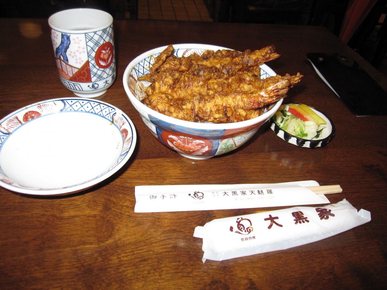 子供の頃見た雑誌に載っていたこのお店の天麩羅がなんともおいしそうで、いつかきっと食べに行こうと思っていました。2012年秋に浅草に行く機会があり、とうとう海老天丼(1900円)を食べることができました。さすがに有名店だけあって、15時半頃でもほほ満席の状態でした。念願かなって大満足の一食でした。