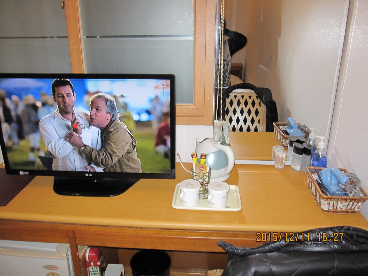 あらかじめ、口コミ情報を見た上で、選びました。韓国人の家族連れなども宿泊していました。部屋は、カードキーで、タッチして入室してドアの入って左側にカードキー入れがあり、そこにカードキーを入れると電機がつきます。入室すると自動で鍵がかかります。チェックインしてくつろいでいると、鍵を開けられて驚きました。その後、フロントから電話があり、ブラインドを交換するとのことで、業者さんが入室して、作業されました。エレベータを降りたところで、何か工事しているなと思っていたのですが、連絡がうまく言っていなかったようです。業者さんも、中に人がいてビックリされていました。入室後に中から、チェーン等で鍵がかけられるといいのですが、マスターキーさえあれば、人が中に居ても、簡単に入れるんだなとちょっと心配になりました。テレビはたくさんの局が映るのですが、ドラマチャンネルはありませんでした。ショッピングチャンネルが多かったです。ホテルには空港から201のバスで行くつもりが、廃止になっている情報を見落としました。困ったことをいくつか、書きます。外の喧騒は意外なほど聞こえず、よしよしと思っていたら、宿泊客が夜遊び派多数で、1時、2時、3時、4時・・と次々に帰ってくる。廊下で大声で話すのが、丸聞こえでした。ドアを閉める音も大きく響きます。初日は日本語の若い女性2人組(関西なまり)が大声で話しながら、深夜に戻ってきてびっくり。それを注意(抗議)した人があり、それに対して女性らが文句を言うのがきこえまいりました。2日目は韓国語でやっぱり女性グループが大声で帰還。声がしないときはドアの開け閉めの音が響いて2日ともゆっくり寝ることはできませんでした。まあ、そういう立地です。夜遊び派ではないのと、お風呂が小さ過ぎました。排水は我慢できました。こちらのホテルは、コスパはいいのですが、眠れないのには困りました。口コミをざっと見ても、そういう情報は無かったので、書いておきます。
