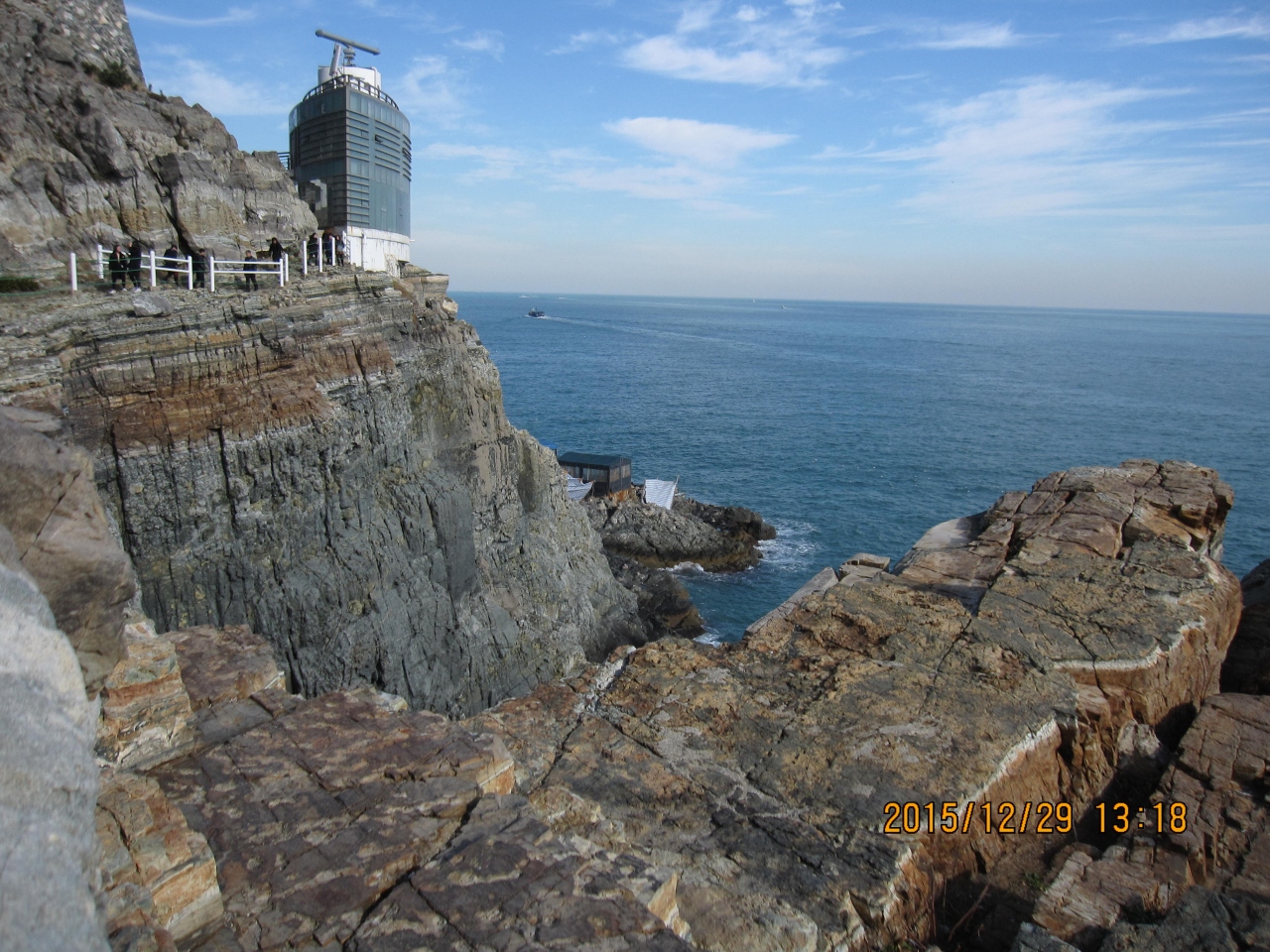 広い公園です。時間が許すのであれば、徒歩の観光も可能かと思いますが、園内を走るバスに乗車して、気になるポイントで降りて観光するのがよいと思います。それでも、結構歩くことになります。韓国人の観光客が多いスポットと言う印象です。年の瀬も押し迫った頃に行きましたが、バスのチケット購入とその後の乗車待ちの時間が結構かかりました。でも、やっぱり行ってよかったです。お天気に恵まれたこともありますが、釜山にこんな美しい場所があるとは。こちらの公園までは市内バスもありますが、私は釜山シティーツアーのジャンボバスで行きました。便利でした。乗車時に頂いた日本語の観光案内マップによりますと、日本植民地時代に軍の要塞地として使用され、一般市民の立ち入りが制限されていたこともあるとか。倭寇に連行された夫を待つうちに岩になった女性の望夫岩など、いろんなみどころがあるとのこと。いろんな歴史の舞台でもあった場所ということです。堆積岩の崖、断層など、地質学的にも魅力ある場所でした。