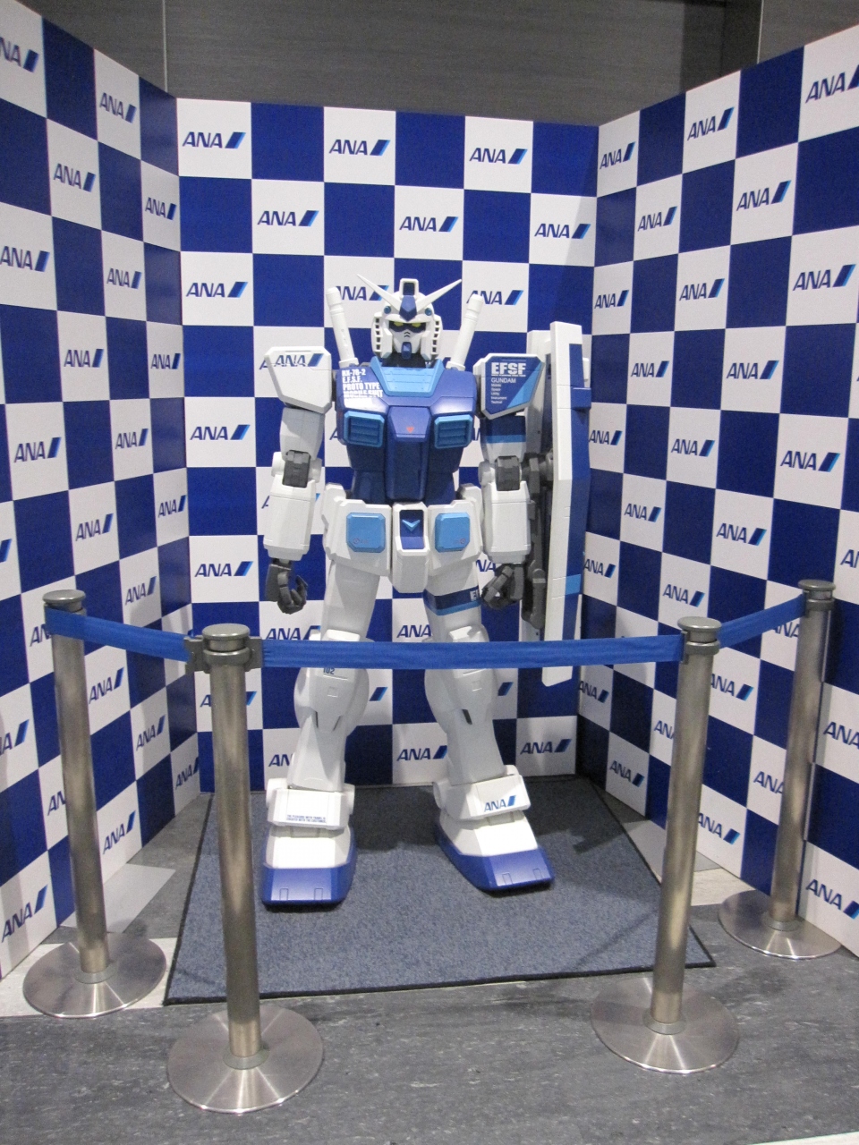ホームページからネットで予約して見学してきました。受付時間前にロビーに入れてもらえました。ロビーには売店があり、さっそくお土産品のチェック。いろんなグッズのほか、お弁当や飲み物などもありました。ANAの飛行機の模型や、コックピット、ガンダム模型の展示などもありました。