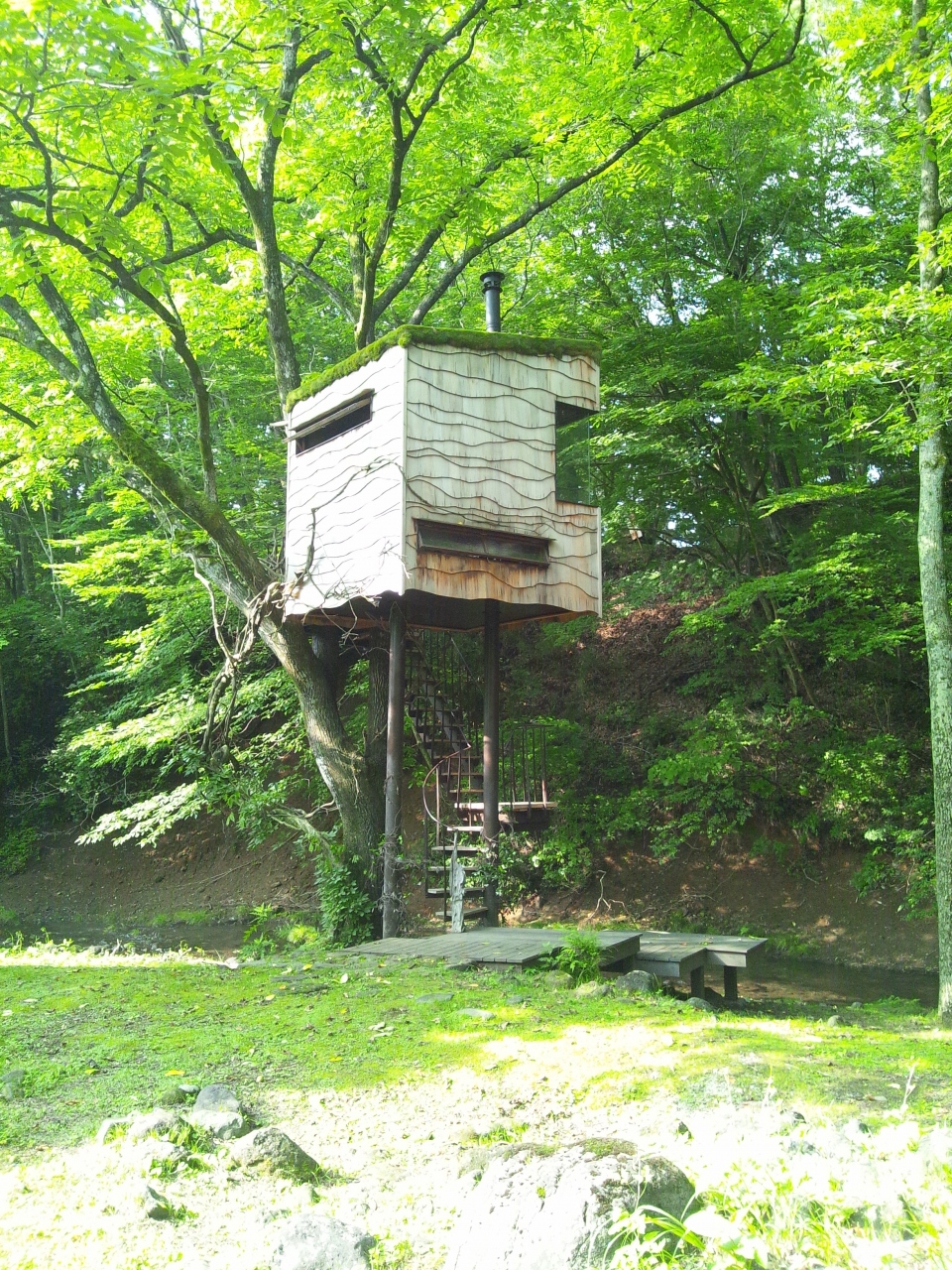 敷地の中には、ツリーハウスや釣りが楽しめる小川、農園などもあり、