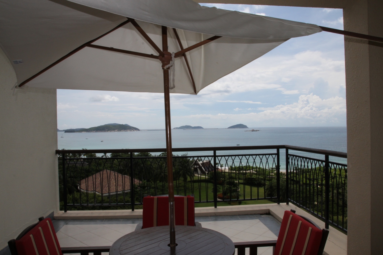 海南島、三亜で最も美しいビーチのあるといわれる亜龍湾の一番いい場所にあります。比較的前にできたので、建物は少し古くなっていますが、館内はまだまだきれいです。8088のグランドスイートに宿泊しました。この部屋は眺望がすばらしくベランダが2ちもあって、270度の角度で景色が見え、最高です。ただバスルームは平凡で開放感がありません。