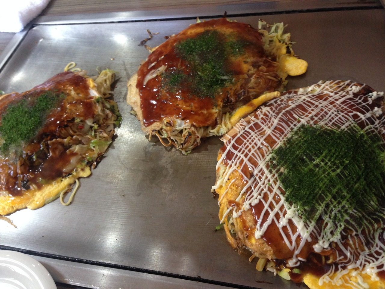 広島風のお好み焼きでテーブル席は鉄板に出来上がったお好み焼きを置いてくれます。