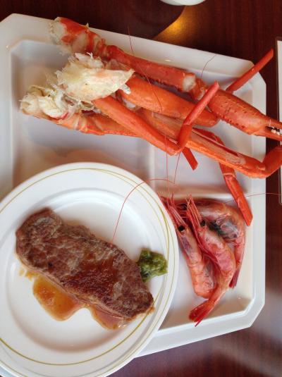 食事はビュッフェ形式。夕食は蟹があったり豪華で満足できました。朝食もビュッフェ形式で小鉢があったりして美味しかったです。