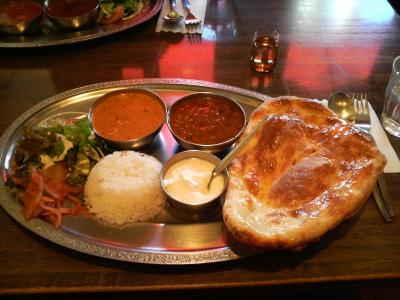 ディナーセット2420円はタンドリーチキンやらシシカバブやら盛りだくさんで、かなりのボリュームです。