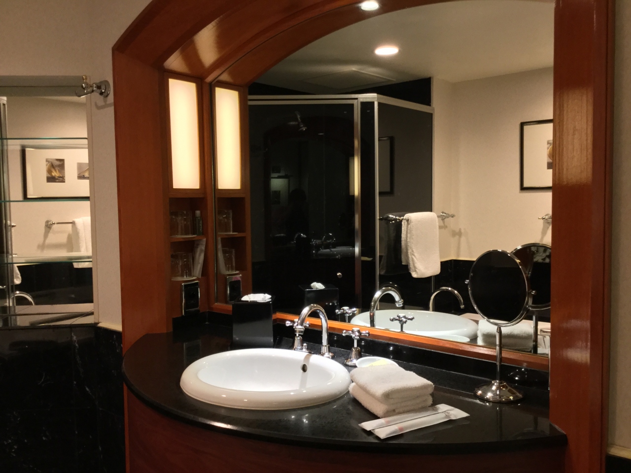 レジデンスフロアは、ロビーから右側へ進んだ先にエレベーター乗り場があり、客室とは別になっているので、レストランやスパ、ラウンジへ行くにはちょっと面倒ですが、お部屋が広くて、バスタブもついているので快適に過ごせます。