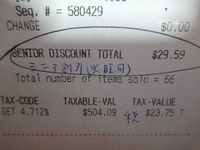 毎週火曜日はシニアデー 60歳以上の人は10%ディスカウントになります。