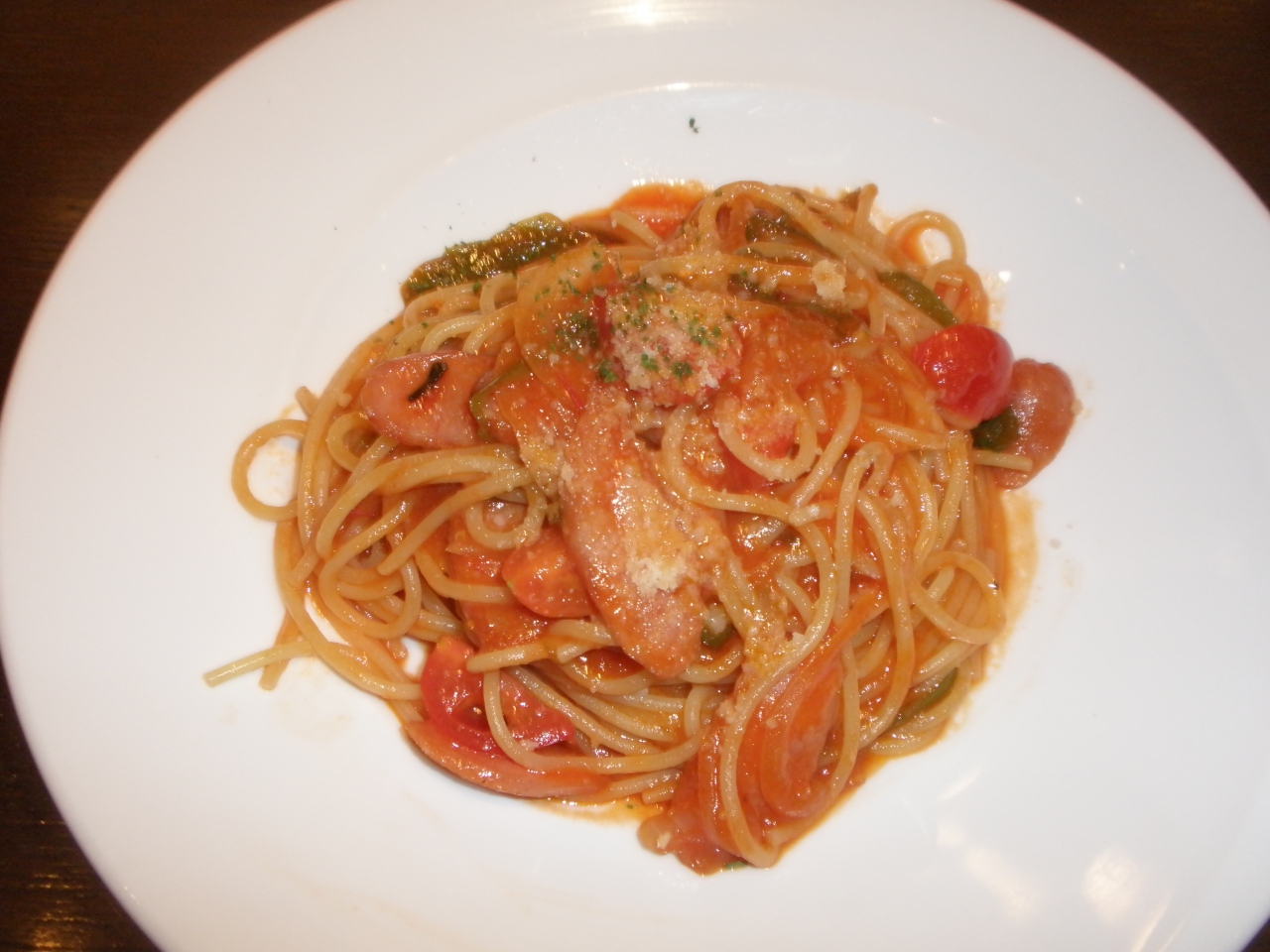 トマト尽くしのお店です。前菜も、当然パスタも、肉や魚のメインディシュも、どこかしらに、トマトが添えられています。前菜の丸ごとトマトは、完熟で、甘くて香ばしくいただきました。ナポリタンも濃厚なトマトソースに満足。お店のサービスもよく、雰囲気抜群でお薦めです。