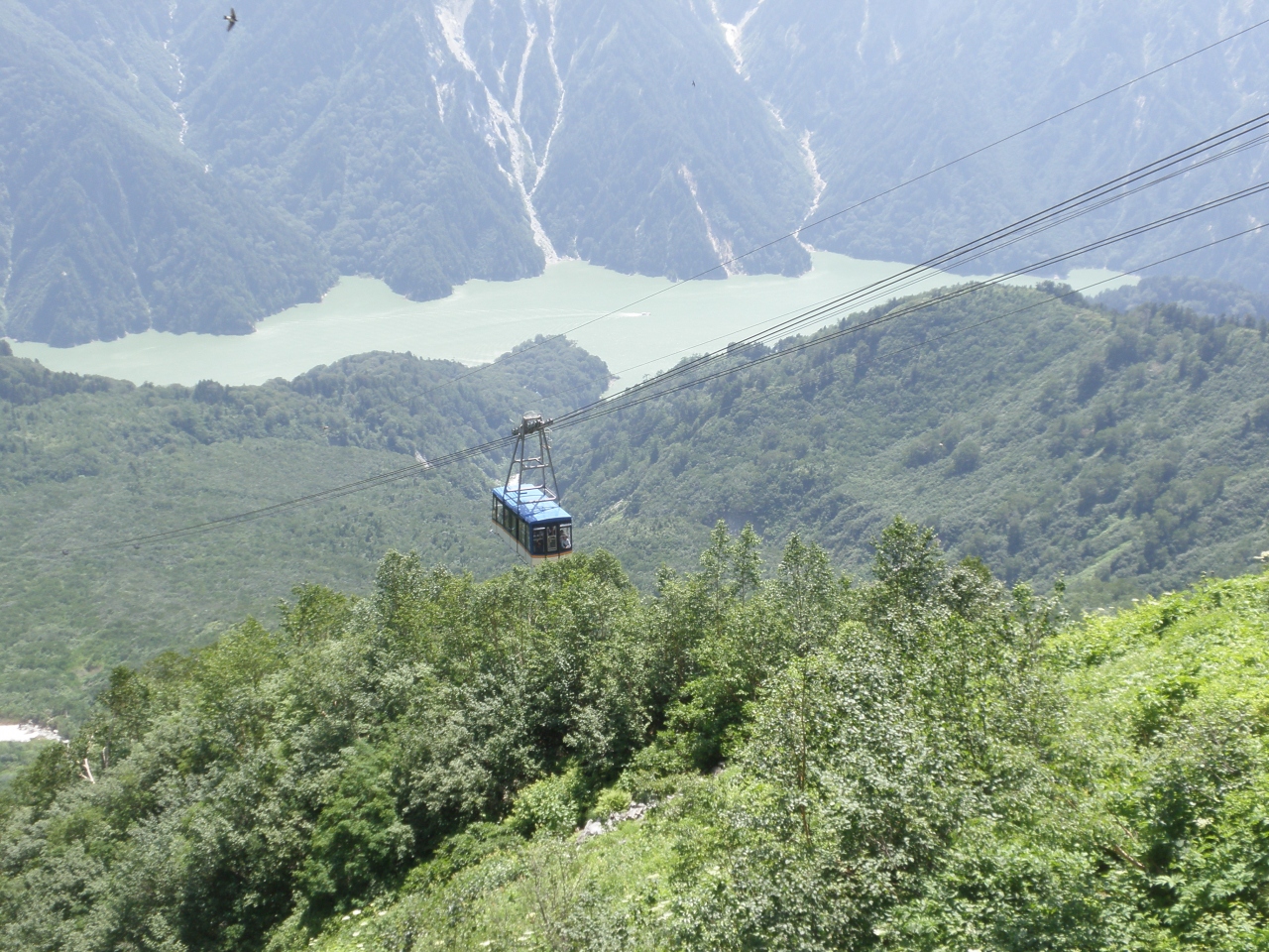 バスターミナルに隣接した建物の階段を4階分程度上って行くと、着きます。展望台からの眺めは、とてもすばらしいものがあります。はるか遠くに黒部湖を望み、北アルプスの山々のコントラストが見事です。ロープウェイが、豆粒のように小さく見えます。