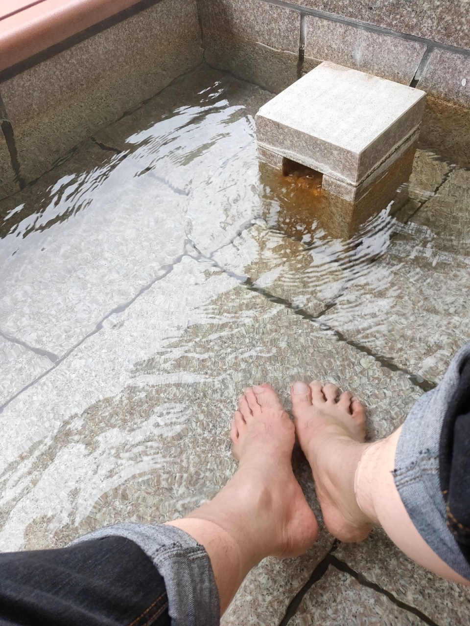 濡れた階段の上を歩くので滑りにくい靴(スニーカーなど)着用が望ましい。