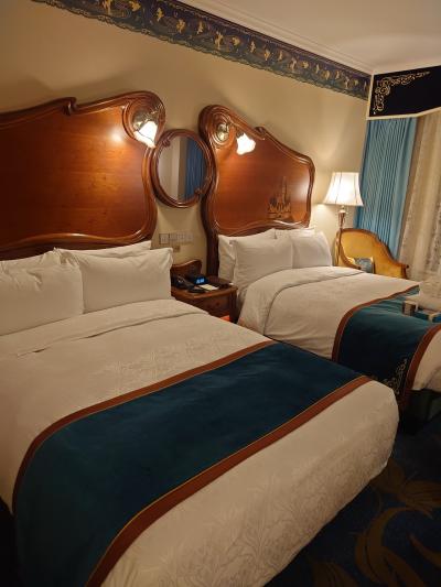 壁に収納されたミッキーのベッドがある部屋だったので、3人別々のベッドで寝ることができました。