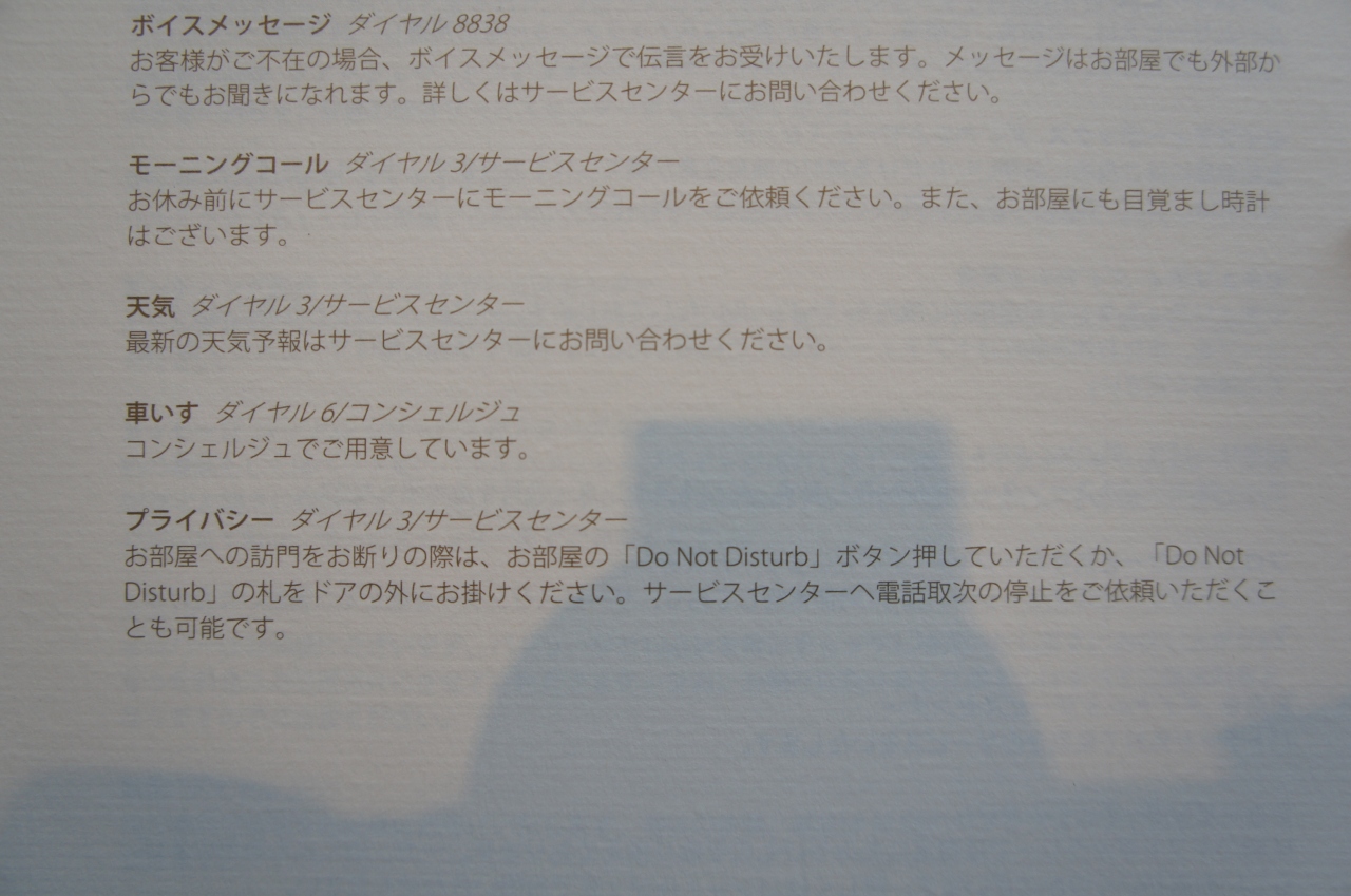 きめ細やかなサービスに感心しました。チェックインの時に喫煙ルームか禁煙ルームの希望を聞いてくれます。煙草OKと言う事にビックリしました。喫煙希望の方には良いホテルだと思います。夜にはベッドカバー外しやお茶のサービスをしにメイドさんがインターホンを押して来ますが帰りを見込んだ結構な時間なので、必要以上のサービスが要らない場合はカードキーの下のスイッチをONにしておく事をオススメします。私はお風呂上がりの時にインターホンがなり、初日は慌てました。尚、それでも某国の方はお構いなしにピンポン、ピンポンして行きますけど。ラウンジのアフタヌーンティーもオシャレで美味しかったです。