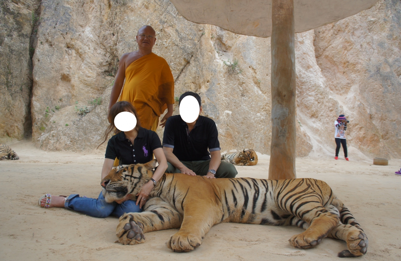 人によって色々な思いがあると思いますが動物が好きでタイガーに触れてみたい方は行った方が良いと思います。タイガーの頭を膝に乗せた時の重量感、手触り、何でも経験だと私は思います。思い通りに大人のタイガーを触りまくる訳には行きませんが、言われた通りにしていれば係りの人がマイカメラで沢山写真を撮ってくれますし、帰りにはDVDとタイガーの骨で作ったアクセサリーらしき物をもらえます。私はオレンジスマイルツアーさんを利用して参加しました。とても感じの良いガイドさんで混載車ではありません。ただし、タイガーと一緒に写真を撮るにはツアー代金以外に現地で1,000バーツ必要です。良いガイドさんに恵まれたお陰で私達は楽しい一時を過ごせました。ただし遠いです。特に帰りが・・・・・・いわゆるバンコク市内の渋滞です。