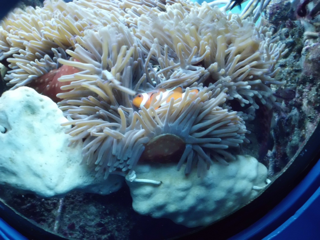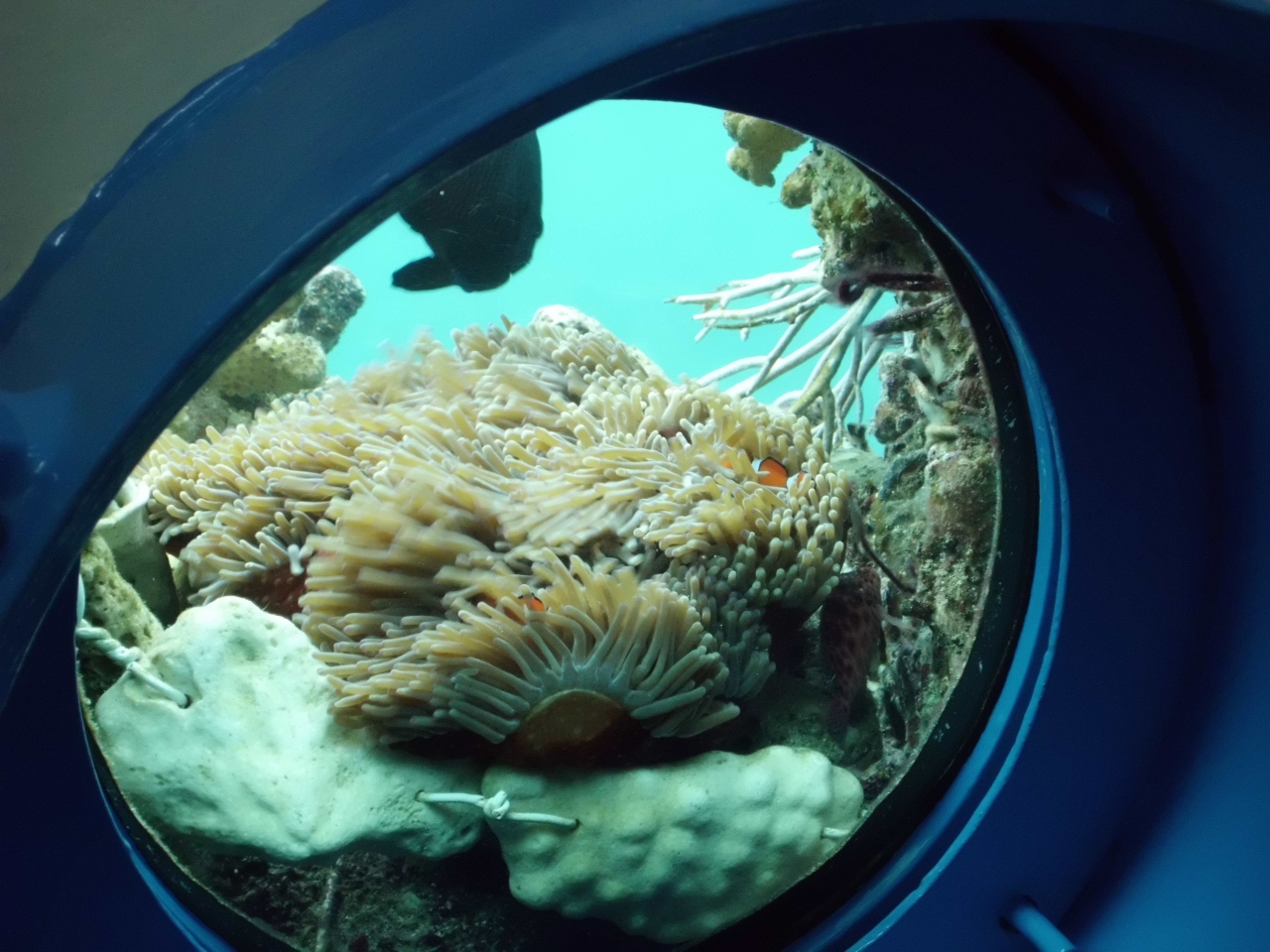 のぞき窓のそばのイソギンチャクにいたクマノミがかわいかったです。