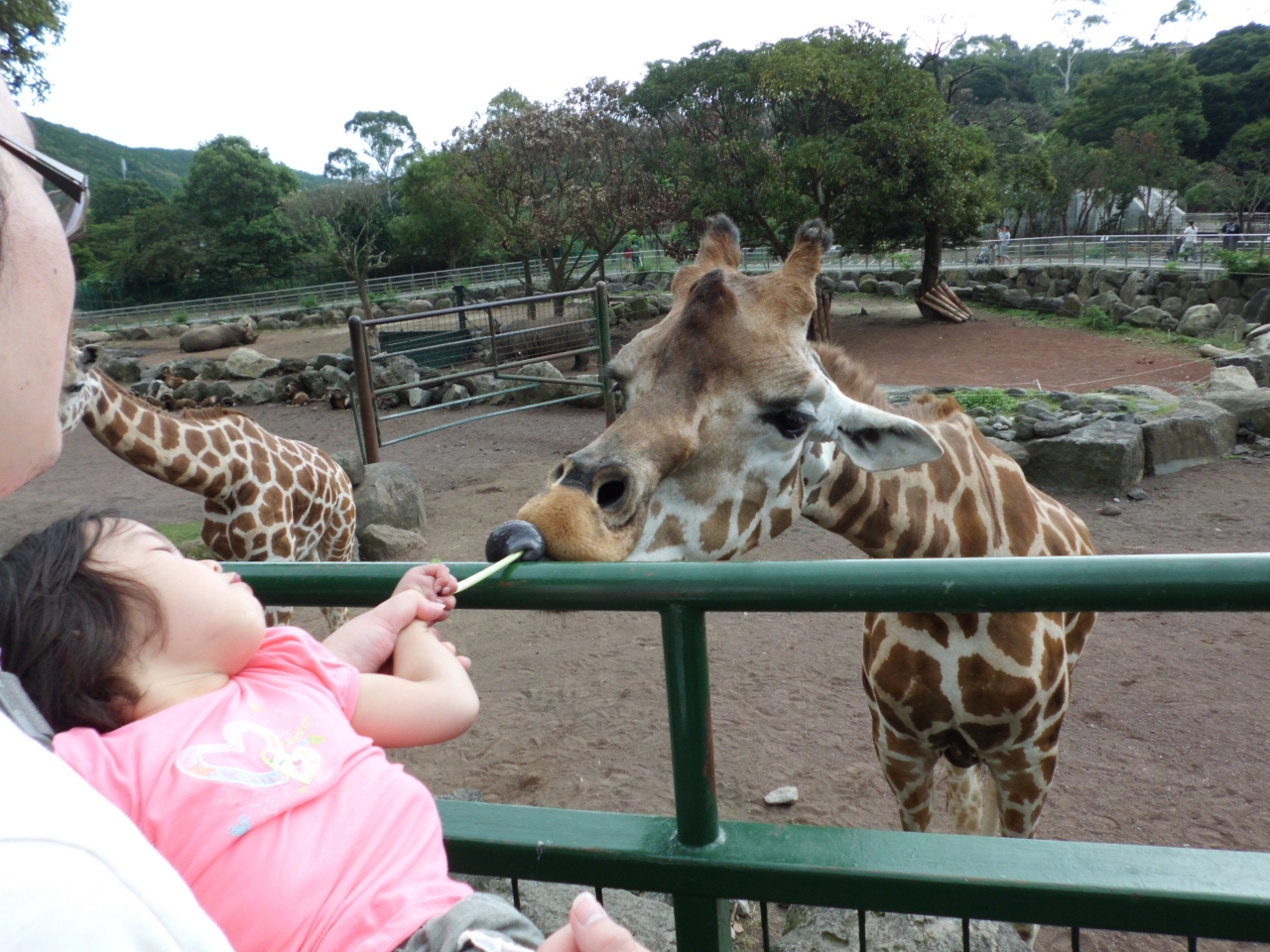 ここがイチオシです! キリンに直接えさ(小松菜の茎や人参など)をあげられます。長い舌で巻き取ってくれるところは、他では体験できないと思います。