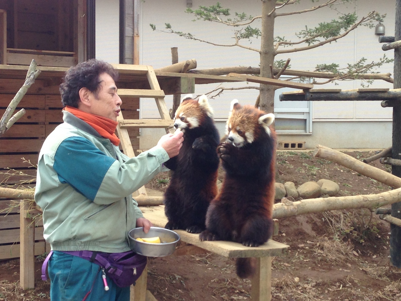レッサーパンダは13:30頃からおやつタイムなので、その時間に合わせて行くと良いです。飼育員さんがりんごをあげながら解説してくれます。おやつの時はレッサーパンダたちは立ち上がってもらっています。(風太くんが有名ですね。)