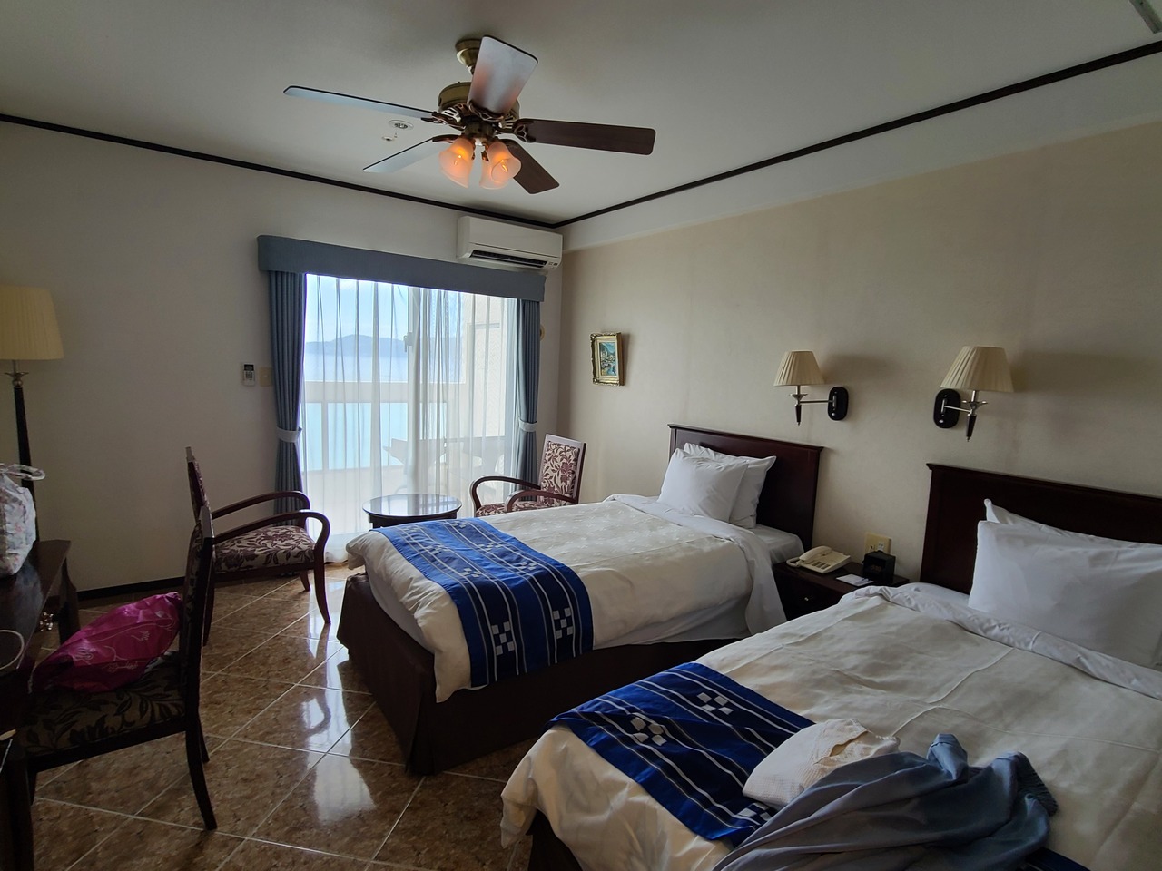 リゾート感はあまりないですが、許田IC近く、1階はコンビニ、歩いて行ける距離にごはん屋さん複数ありという便利な立地で、ビーチフロントでお部屋の中からでも綺麗な海が眺められます。