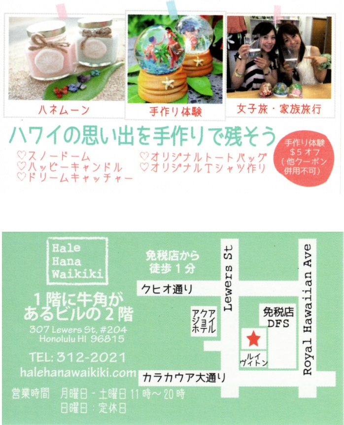 ワイキキど真ん中でできる手作り体験アクティビティです。