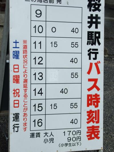 週末には、桜井駅から小さなバスが二の鳥居まで出ています。お得な切符の...