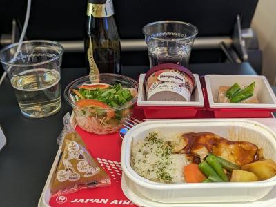 機内食は鶏肉の味噌デミグラスソース味ご飯にあいます選択肢なかったけど最...
