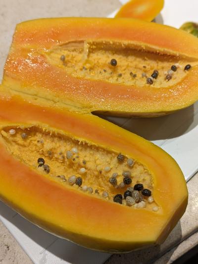 ホテル近くにあった露店の果物売りでパパイヤを購入して,ホテルで食べます...