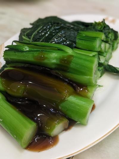 ワンタンメンにはこのゆで野菜オイスターソースかけてあってうまい