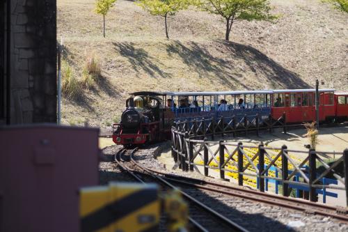 竹林の小径の観光のあと、ここに来ました。SLと自然が楽しい花の国で、イギリス村、カナダ村、日本庭園などあります。ここは冬の閑散期だけワンコOKという事です。花などがあったらもっと目でも楽しめたかなぁと思うけど、それでもワンコとの散策は楽しかったです。