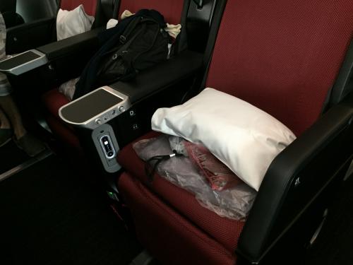 成田⇄フランクフルト、機材はB787 2-3-2の配列です。(シートはNo17~21)エコノミーより少し広めですが、フットレストが付いているもののイマイチな角度というか高さ…エコノミーにプラス10万円は高すぎる感じで…私としては、次は無いかなぁというのが正直な所。しかも機内食はエコノミーと一緒ですが、日本発なのにエビチリのご飯がベチャべチャでガッカリ~。でも2回目の牛丼はおいしかった。