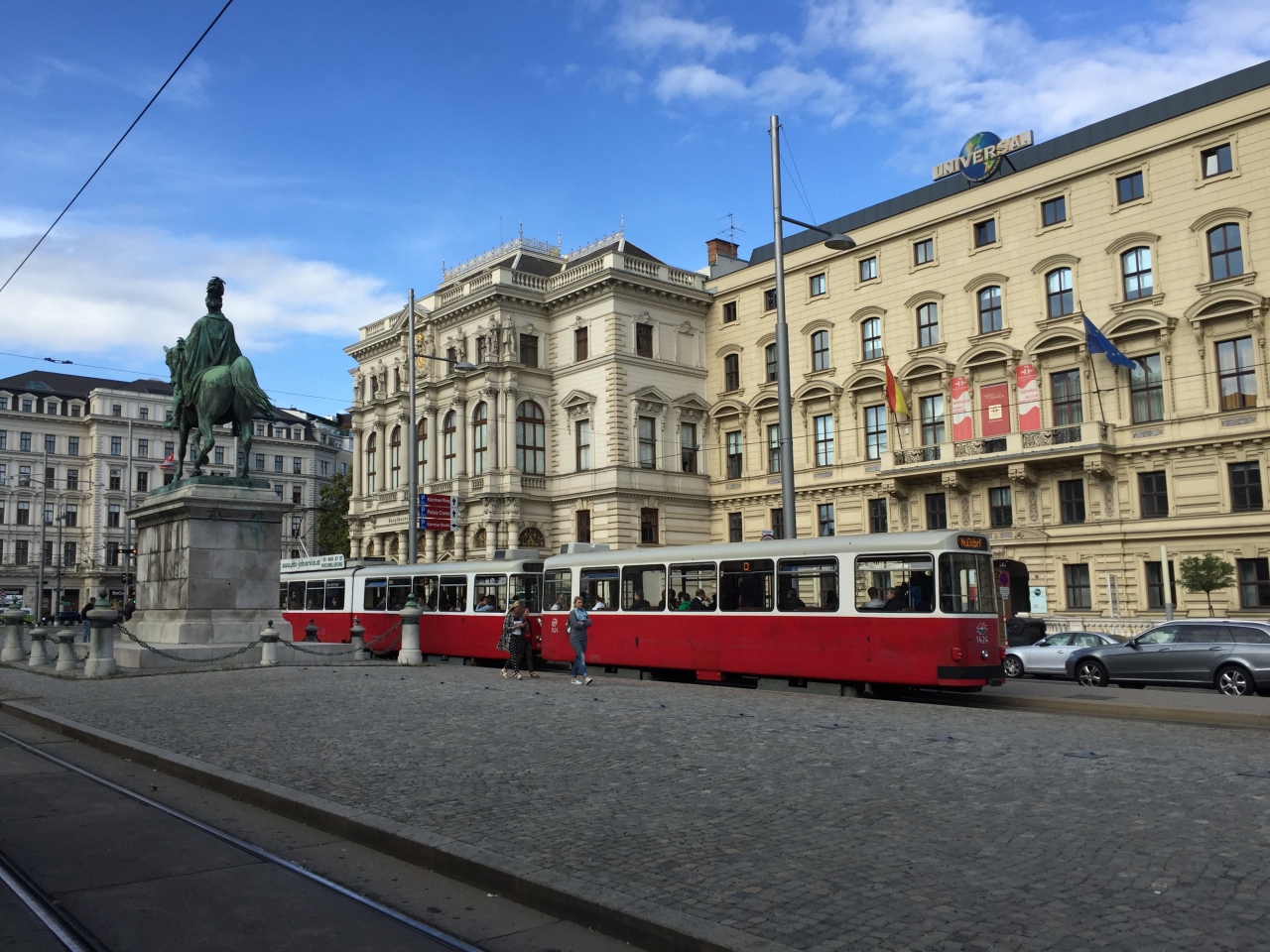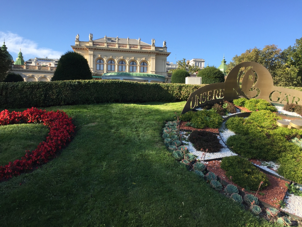 市立公園にあるこのヨハン・シュトラウスは金色で、立ってバイオリンを演奏しています。実際にシュトラウスはこのスタイルで演奏をしていました。観光客ならここで記念写真を撮っています。朝イチの観光だったのであまり人は多くありませんでした。