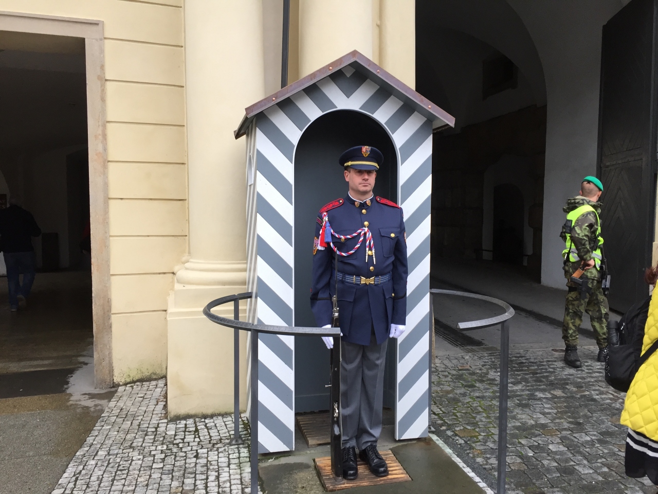 プラハ城の入り口には、衛兵がいて、みんなが代わる代わるに隣に立ち写真を撮っています。それでも直立不動でピクリともしない。毎日正午に行われる「衛兵の交代式」ですが、残念ながら見ることはできませんでした。