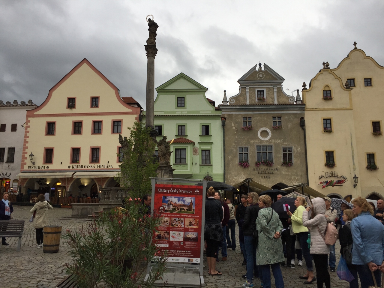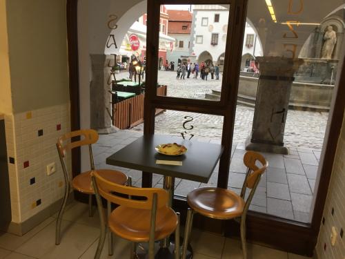 ツアーでチェスキークルムロフ城からこの広場に到着し、ここで解散、再集合がありました。なので待ち合わせスポットにもなってるようです。この周りの建物はどれもみんな可愛らしくカフェで眺めるのもいいスポットです。
