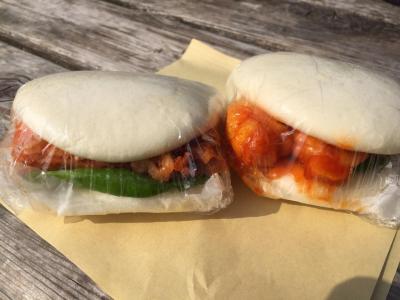 東北自動車道の最初のサービスエリア蓮田で休憩、朝食をとることにしました。色々とお店を見て回ってアジアンクイックにしました。点心エビチリバーガーと点心チキン照焼バーガー購入。どちらもなかなか美味しかったです。