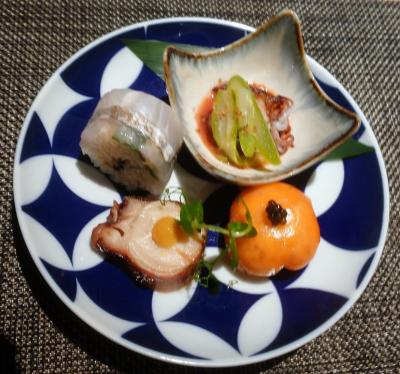 予約して全10品を頂きました。どれも手が込んだ料理です。旅館を改装した建物は趣があります。先付けは太刀魚、タコ、サーモンのキャビア乗せ、生ホタルイカを茹でてものにアスパラ和え。椀物は鮎、魚のすり身、新じゃが?。お造りはノドグロ、キンメダイ、ハマチ、静岡産ワサビのすりたては甘くて刺身を引き立てます。鯛の焼き物。煮鮑と鮑の肝だし酢飯。口直しシャーベット。約50日熟成した飛騨牛のステーキシイタケソース。焼きおにぎりの鰻茶漬け風。リンゴのワインコンポート。ビーガンチーズの美生柑乗せ、焼きたてビスケット。一品ごとに説明がありました。名鉄岐阜駅から徒歩4分です。