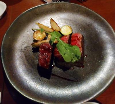 9月14日に料理のみ5500円のコースをテーブル席で予約して、17日18:30に出かけました。地下鉄鶴舞線丸の内駅7番出口から南へ徒歩2分です。席は2階で階段は古民家風なのですごく急でした。トイレは2階にもあります。飲み物は赤ワインのスキャンティをボトル3080円で頂きました。1:北海道産ズワイガニとその味噌のムース、大さじ一杯の大きさです、絶妙な味。2:マグロのカルパッチョ。3:生ハム、サラミなどの盛合せ。4:鳳来牛のブルスケッタ。5:クインチ名物“エビパリ”。6:パン、オリーブ油をつけて食べました、おかわり可です。7:幻の牛 愛知新城”鳳来牛” シンプルに網焼きで、とろけました。8:ナポリタン風パスタ。9:ドルチェ(アイスクリーム、ドライフルーツ、キャラメル味クッキー?)。どれも本当に美味しかった、一度は経験してください。席は2時間までで、当日は満席でした。