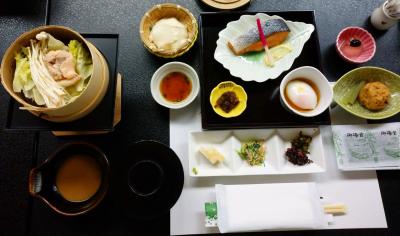18人のツアーで宿泊しました。部屋や部屋風呂から中庭が見え風情があります。温泉は硫黄の匂いがして色も綺麗です。ただ露天風呂まで裸で通路を30m行くのは寒かった、露天風呂からの景色はいい。夕食の岩魚の刺身と塩焼き、美味しかった。前菜も紅葉の形の冬瓜、柿のように見えるうずら卵など手が込んでいた。リンゴを容器にしたグラタンも美味しい、容器のリンゴも食べられます。松茸土瓶蒸し、黒毛和牛朴葉味噌焼き、デザートも良かった。朝食の飲用温泉水を用いたお粥は一度食べる価値あり。