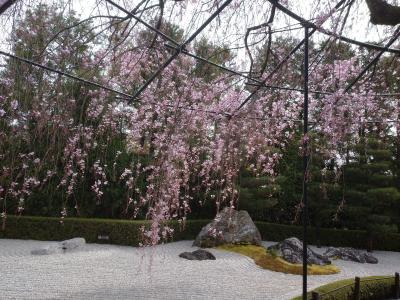 退蔵院拝観料600円。南側に広がる庭園は「余香苑」滝と桜と緑が見事でした。紅枝垂れ桜の南側に枯山水の「陰陽の庭」があります。水琴窟も忘れず聞きましょう。妙心寺法堂拝観料700円、狩野探幽作の天井龍は見事です。アクセスはJR嵯峨野線「花園駅」から南門まで徒歩5分。駐車場は東側にあり参拝者は無料、南門まで徒歩2分。