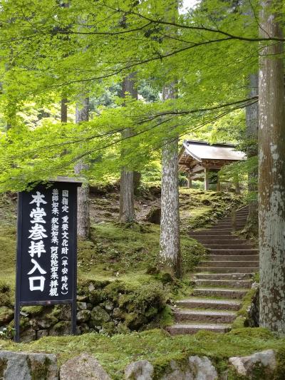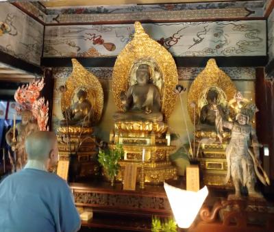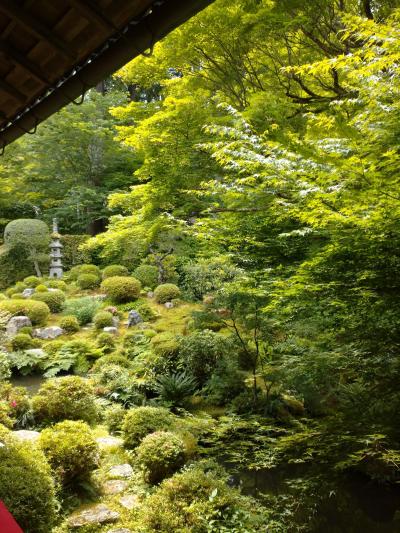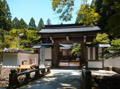 三千院から緩やかな登りを10分行くと来迎院に着きます。途中、三千院の朱雀門、浄蓮華院の門の横を通ります。融通念仏の祖とされる聖応太師良忍(愛知県知多半島出身)が来迎院を再興しました。本堂安置の木造薬師如来坐像・木造阿弥陀如来坐像・木造釈迦如来坐像は重要文化財です。団体参拝だからなのか、和尚さんが寺の歴史を説明して、天台声明を披露してくれました。